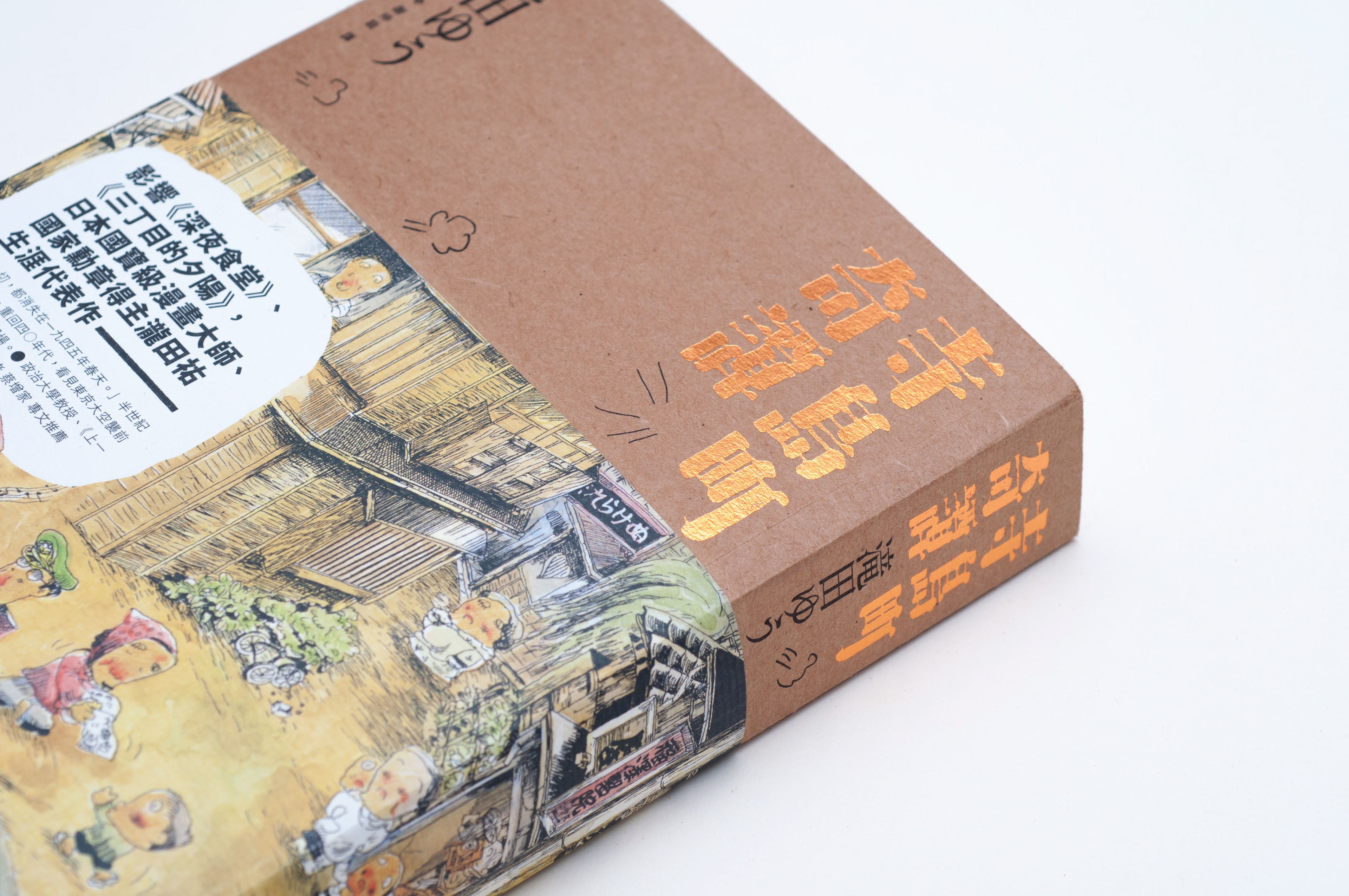 利用牛皮紙的粗面質地以及書腰上的漫畫圖傳達出本書的庶民感。封面無多餘設計,使用燙金書名平衡材質的廉價感,並用漫畫效果線點綴。
