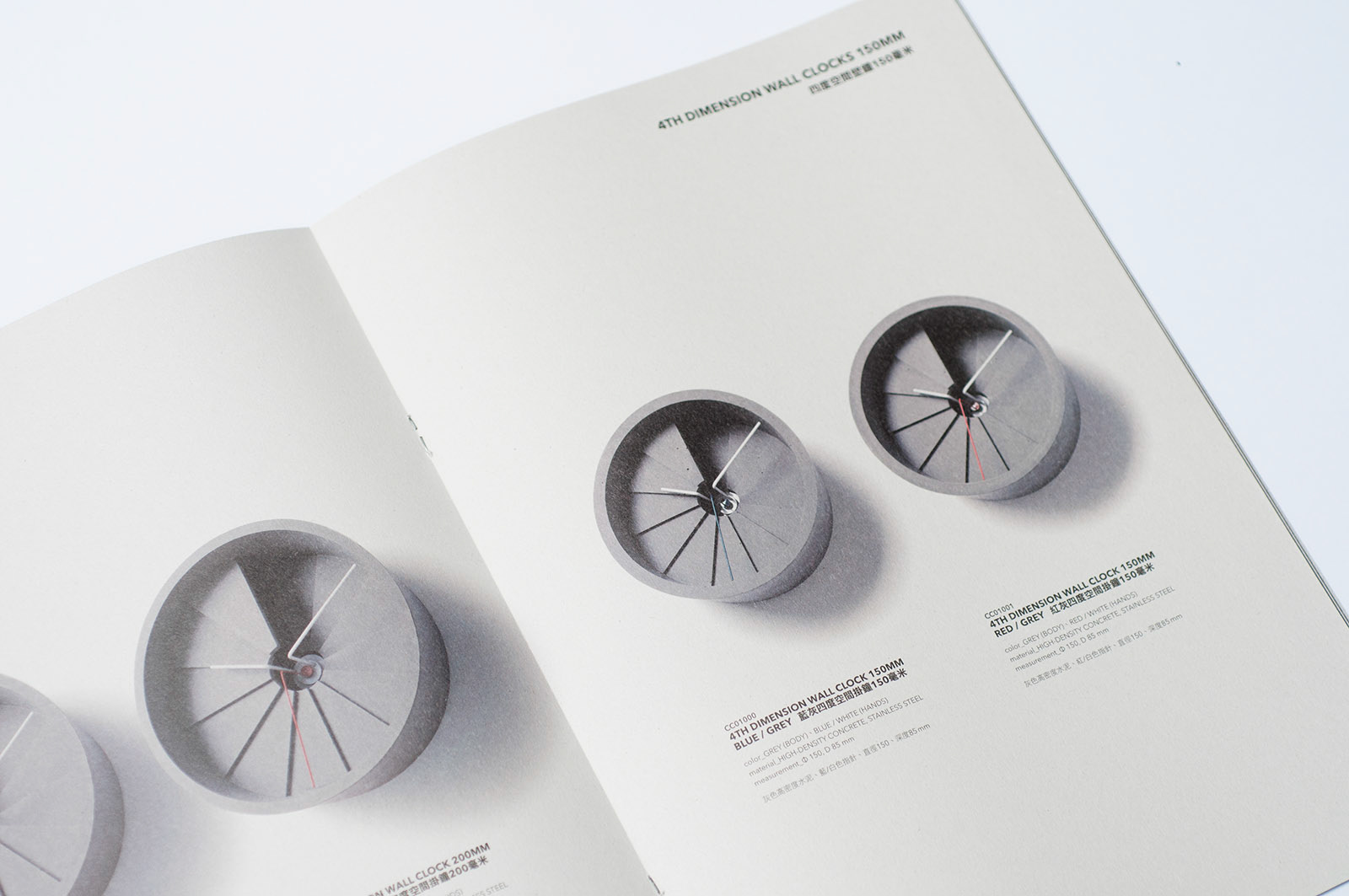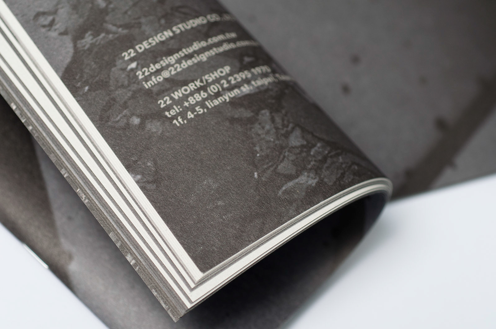 Product catalog of 22 Design Studio, a Taiwan based life style product brand featuring concrete as their main material. To emphasis the haptic texture of concrete material, we choose Takeo Tablo paper, a greyish light-coated paper with solid opacity. The subtle variant shades of grey is the key visual element through the whole booklet.
