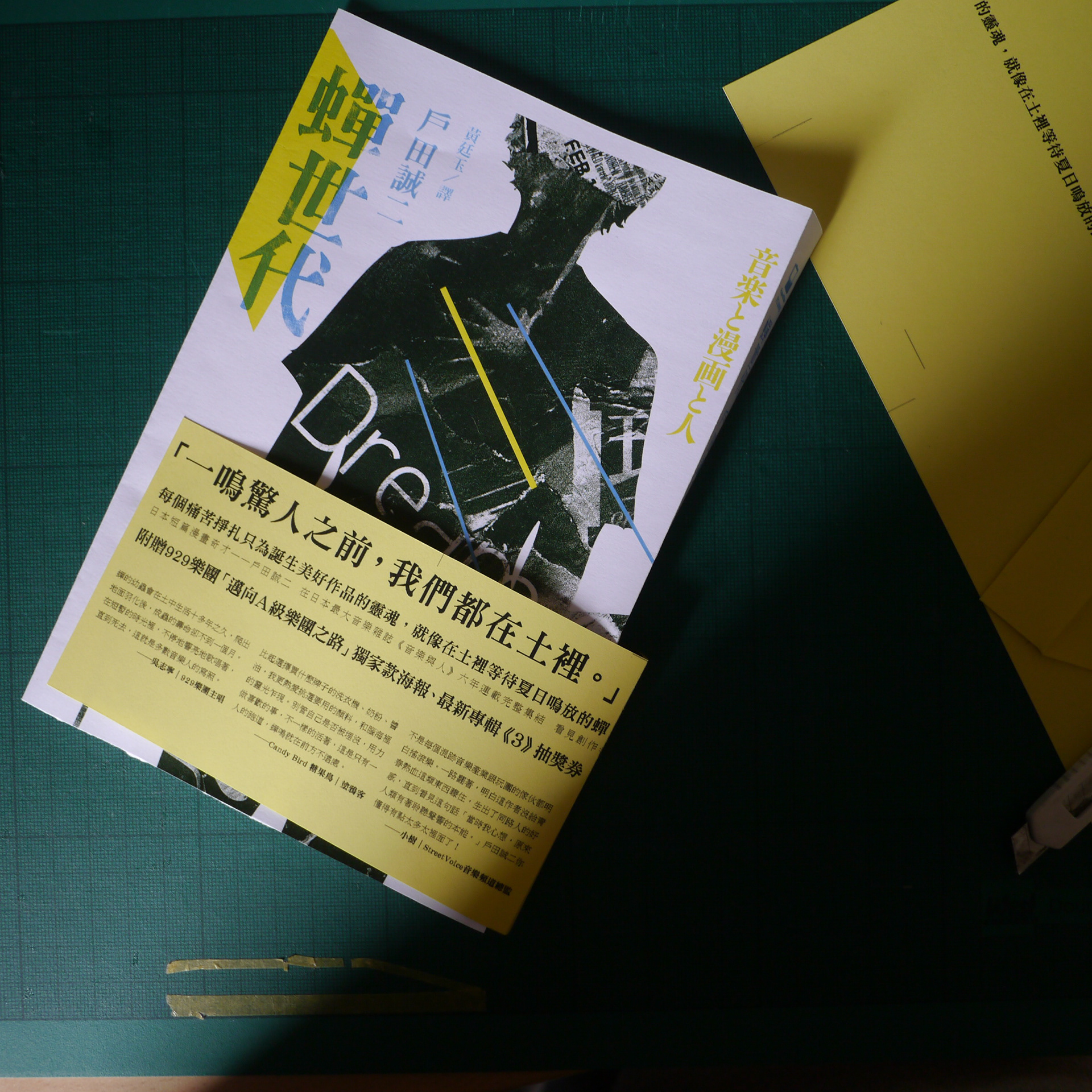 蟬世代的主角們都是掙扎中的年輕音樂人或是小漫畫家,讓我想到龐克年代的DIY刊物 (zines)。那時候排版沒有電腦軟體可用,大家都是用剪刀、膠水、打字機與影印機這些隨手可得的道具製作內容。我想在標題上重現那種天真的粗糙感,這是光靠電腦無法重現的。我把粗明體字體印出來,然後重新排列,另外也把字體印出來,用水暈開,再把字重新掃進電腦。