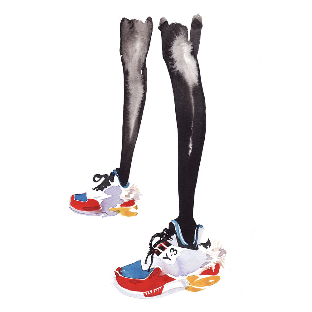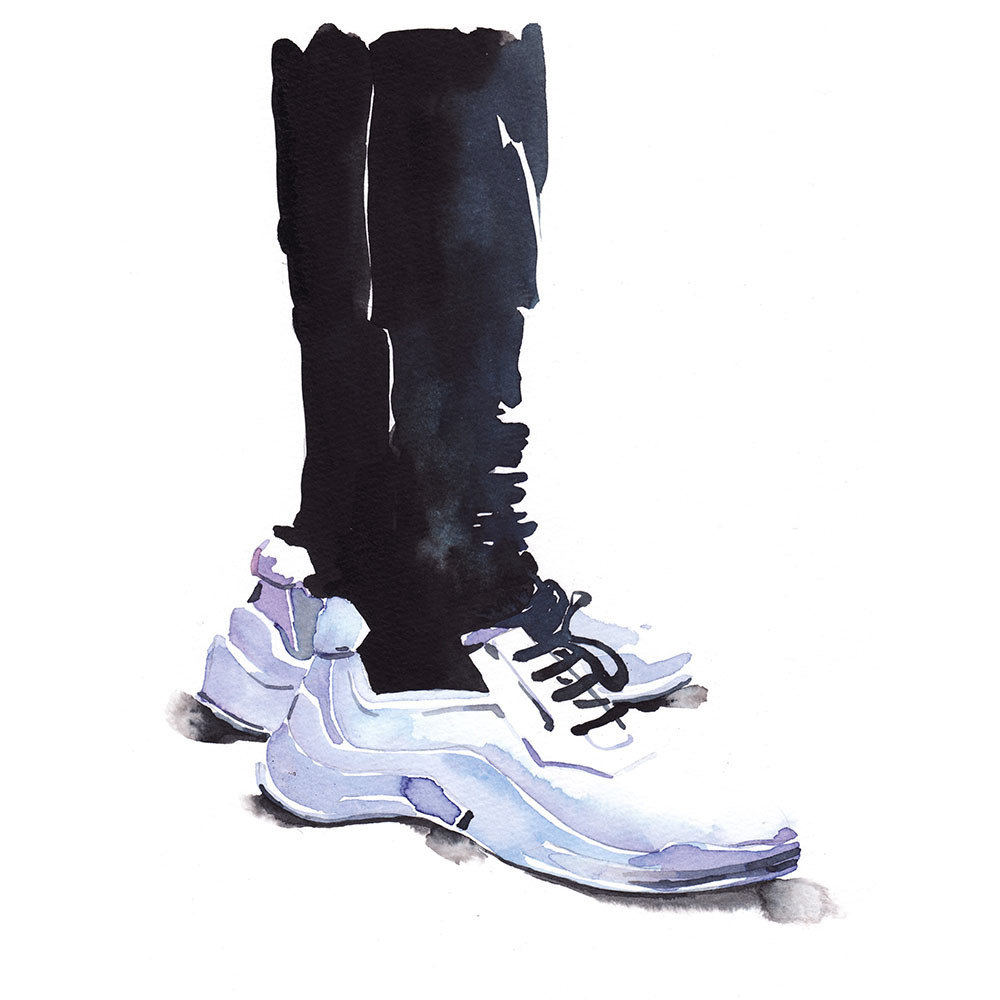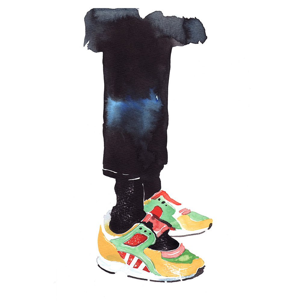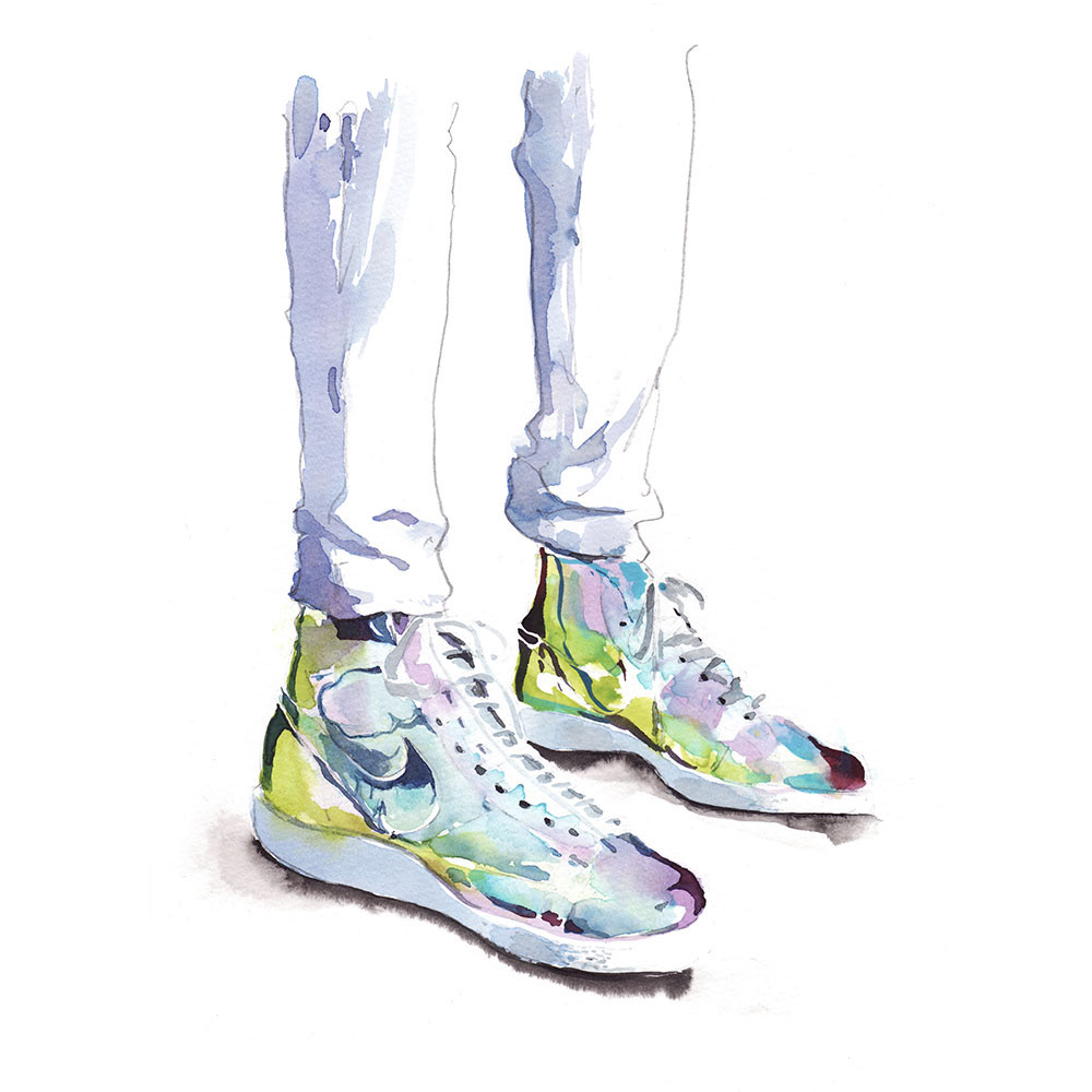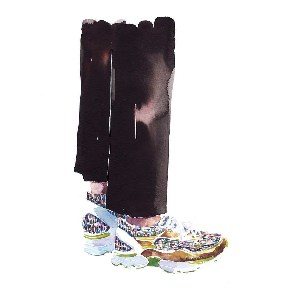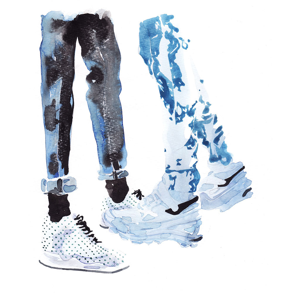 This is a serial illustration of people wearing sneakers in New York Fashion Week, 2015, commissioned by Bounce online sneaker magazine.