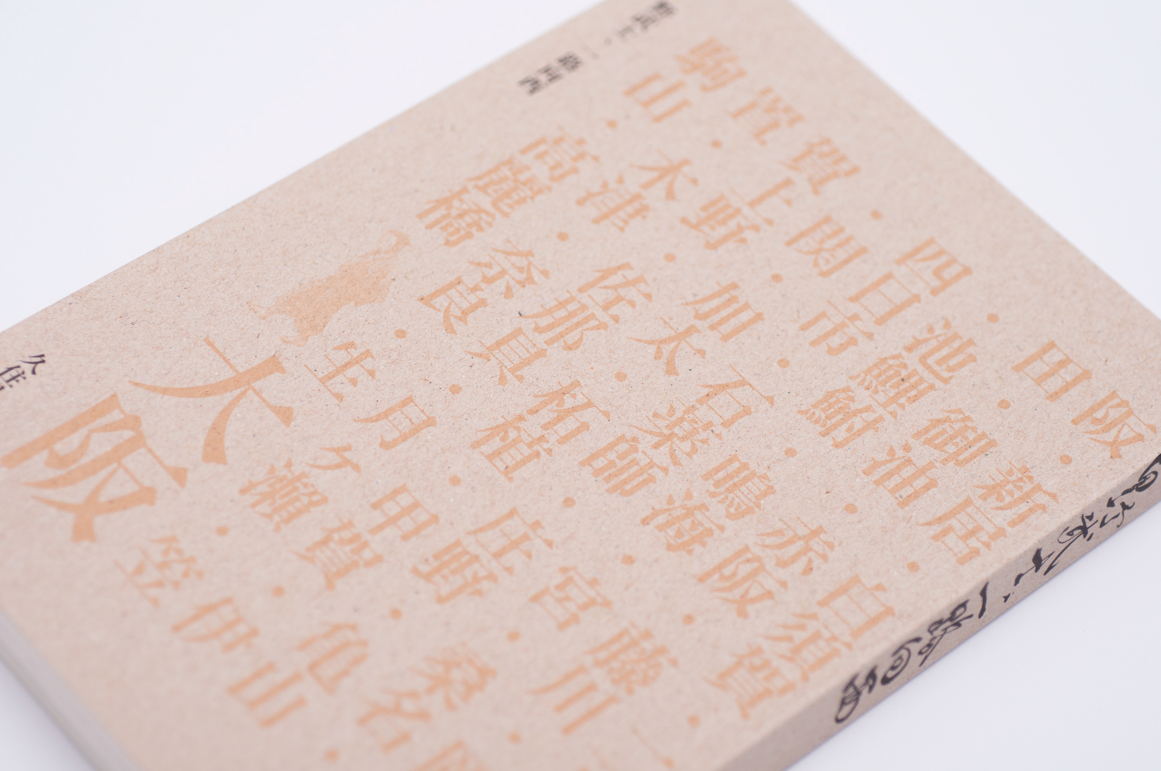 The design of inner cover. All the Japanese kanjis are the name of the places mentioned in the book. This cover is printed as duo-tone instead of CMYK inks.